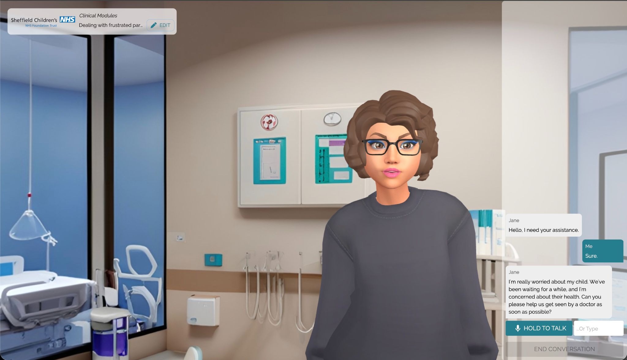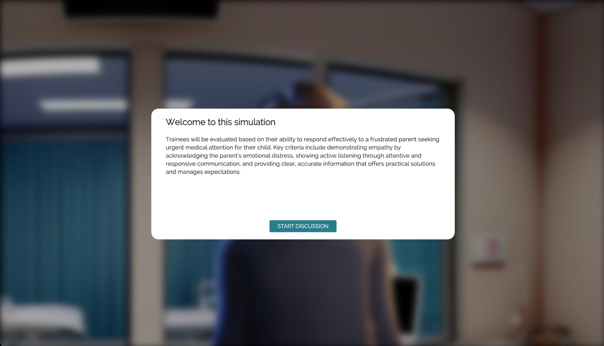 In the resulting program composed of 3 simulations, trainees interact with different concerned parents to identify their child condition, communicate it, and empathetically describe escalation process.